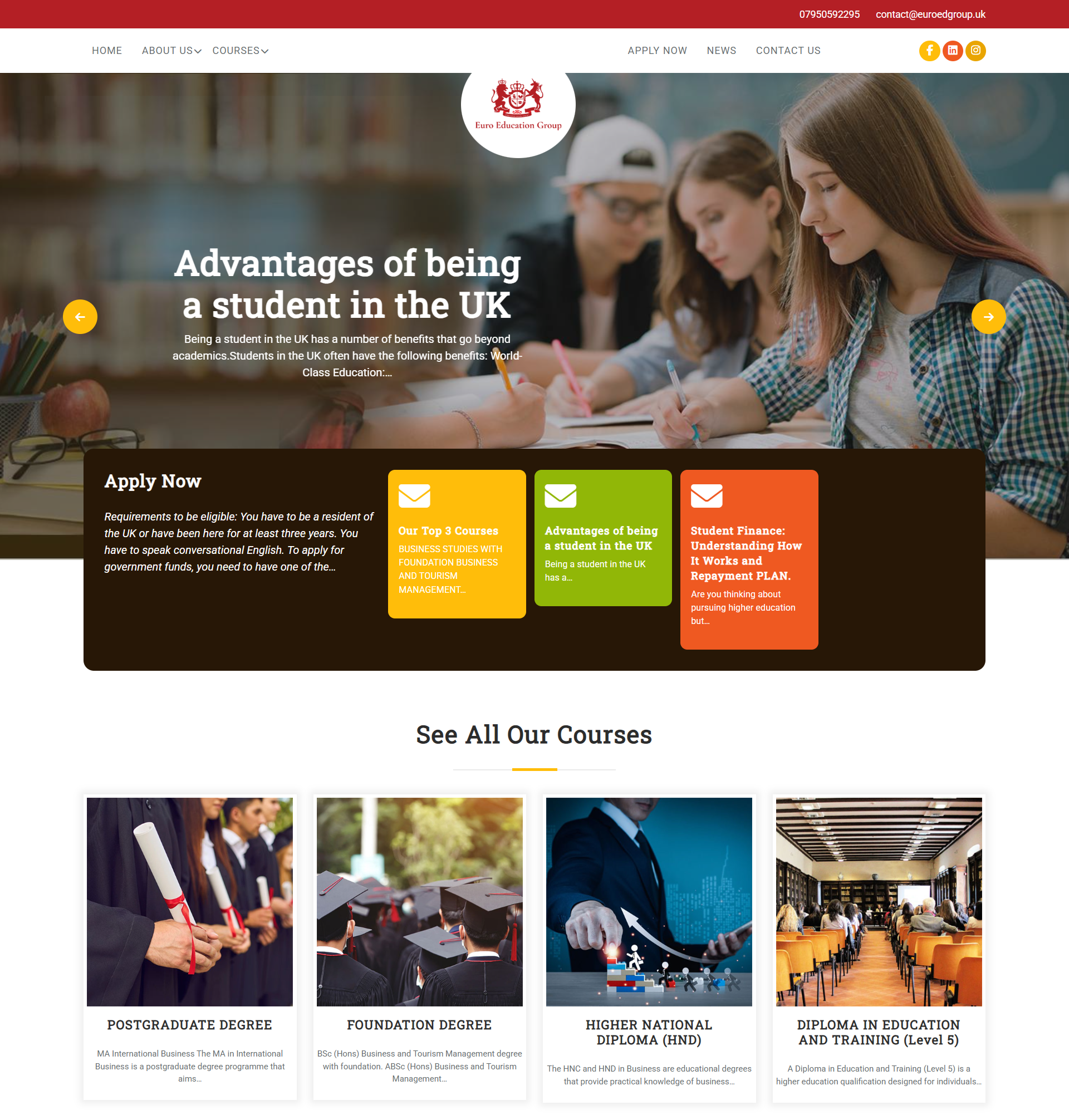 www.EuroEdGroup.uk is a professional WordPress website built for EuroEd Group, an educational consultancy based in the UK that helps students apply for government-funded student loans and enroll in higher education programs across the country.